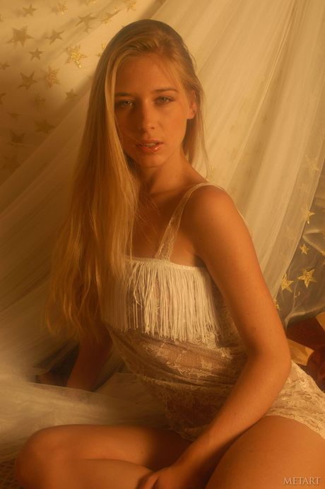 Met Art: L'adolescente blonde Lucy s devient nu avec allusion pendant l'action en solo