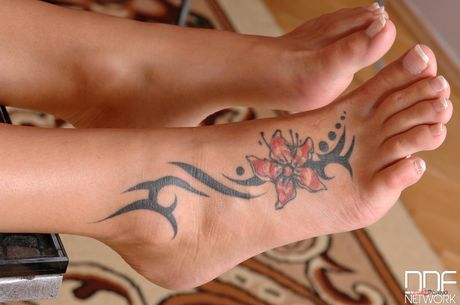 Porn World: Bondage lesbien Laura Lee jouets avec un gode et fouette ses pieds esclaves