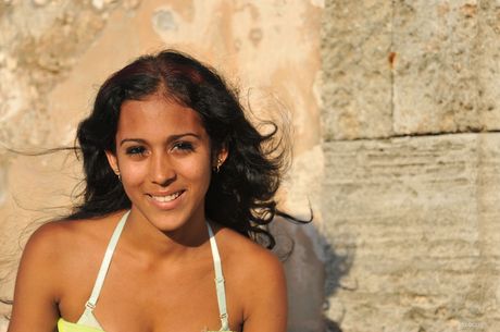 Erotic Beauty: Brunette Teen Luida Modèles totalement nus sur un affleurement rocheux