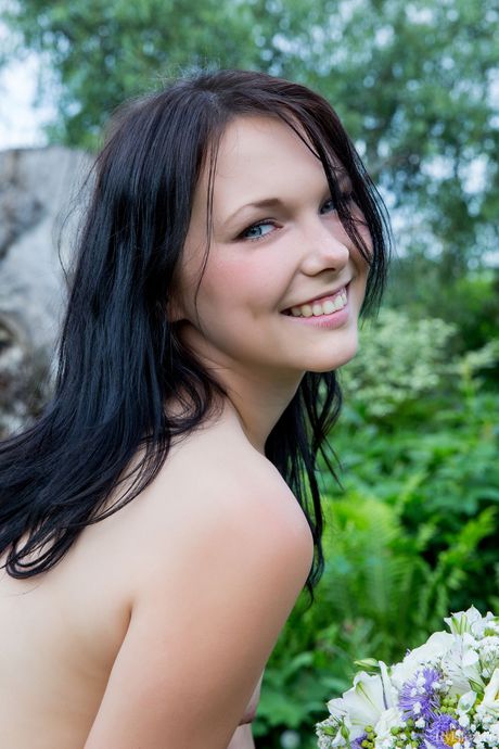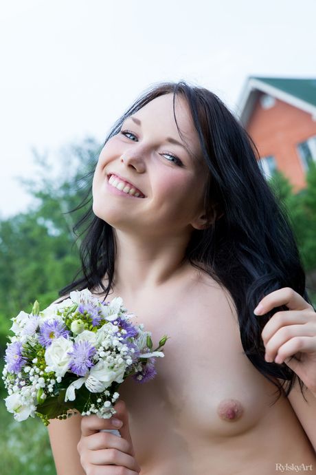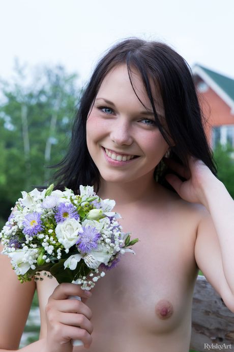Rylsky Art: Charmants modèles adolescents yvonne totalement nus sur une chaise en bois dans le jardin