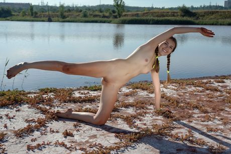 Erotic Beauty: Un adolescent délicat Hrizantema pose nue sur la plage et dans l'eau