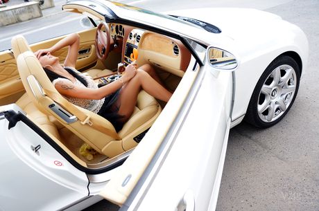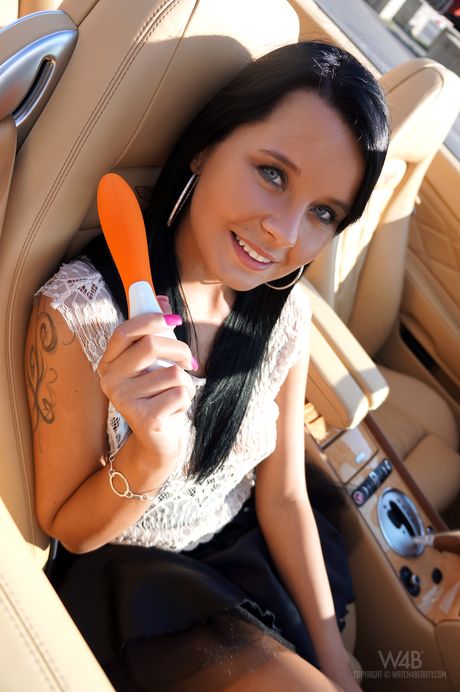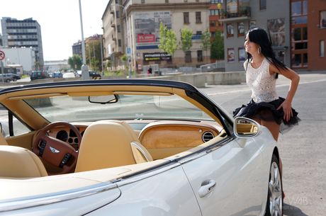 Watch 4 Beauty: Un adolescent délicat Mia Manarote pose nue sur le siège arrière d'un cabriolet