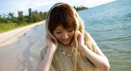 Idols 69: Japonais délicieux Mari Misaki montrant de gros seins et une chatte poilue sur la plage