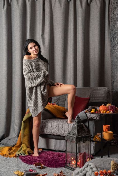 Erotic Beauty: Le délicieux adolescent Sonja supprime un pull pour modéliser totalement nu
