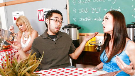 Hot And Mean: Femmes de luxe Angie Savage et Melissa Jacobs en belle jupe léchant les chattes humides et se masturbant avec un jouet sexuel