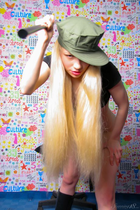 Stunning 18: L'engagement de l'adolescent Olya N pose nue dans une paire de bottes noires dans un tournage en solo