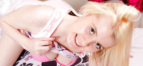 18 Eighteen: Hot Blond Teen Miss Brook Bares petits seins et chatte rasée