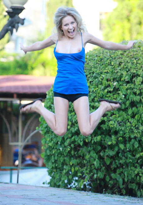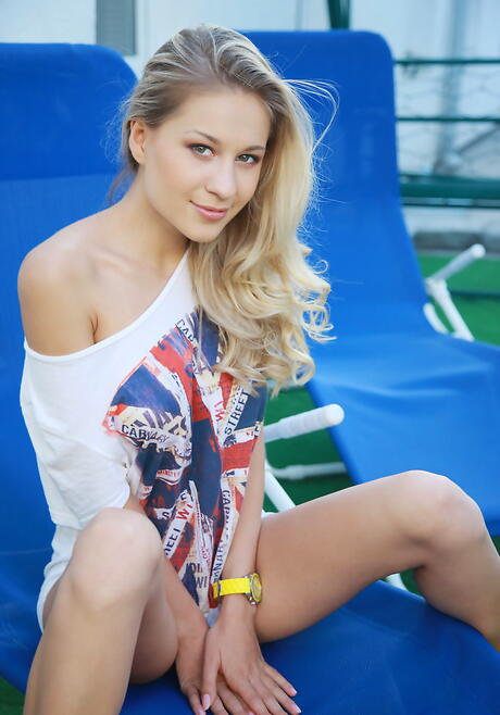 Met Art: Hot Blonde Teen Candice B dénuse de gros fous et écarte les jambes en plein air