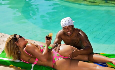 Mike in Brazil: Belle milf latin Anny Lee suce une tige noire profonde et prend une éjaculation en désordre à la piscine