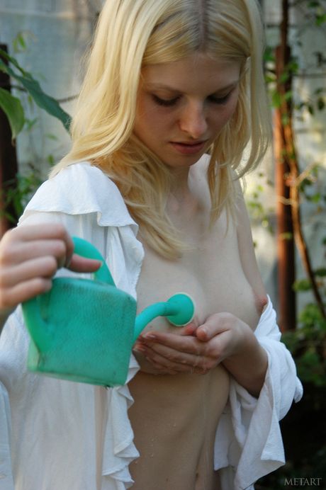Met Art: Un adolescent magnétique Nastya C dévoile son corps dans le jardin et montre ses gros seins et sa chatte chauve