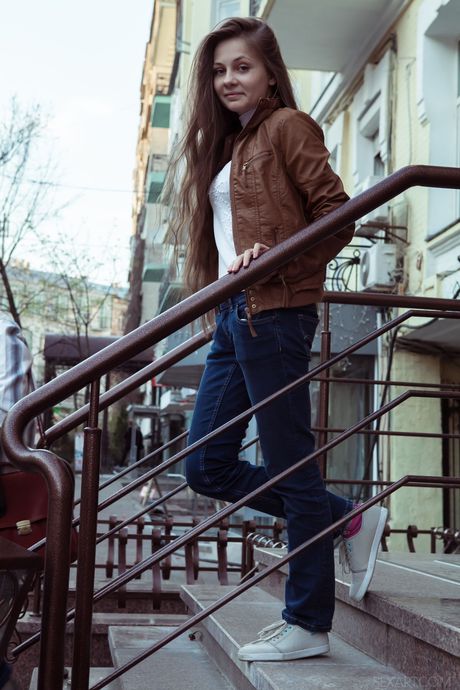 Sex Art: Teen nue ennu A joue avec ses cheveux longs et sa chatte à l'extérieur