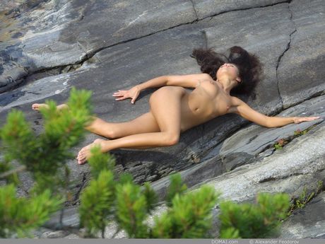 Domai: Une adolescente nue aux cheveux longs et un beau visage pose nue
