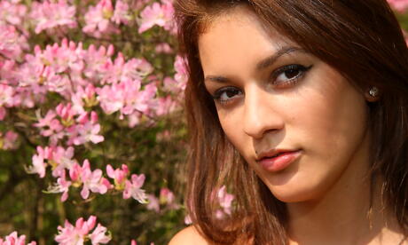 Watch 4 Beauty: Rangy Brunette Cutie Becca A révèle de minuscules seins et écarte les jambes en plein air