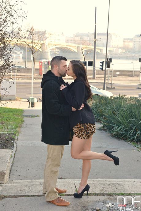Porn World: La tchèque sexy Kristy Black donne une pipe et se fait facial à l'extérieur