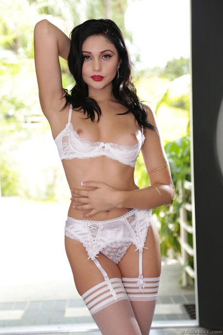 Evil Angel: Pornstar sexy Ariana Marie affiche son gros cul en lingerie blanche et bas