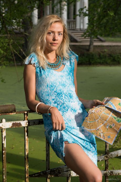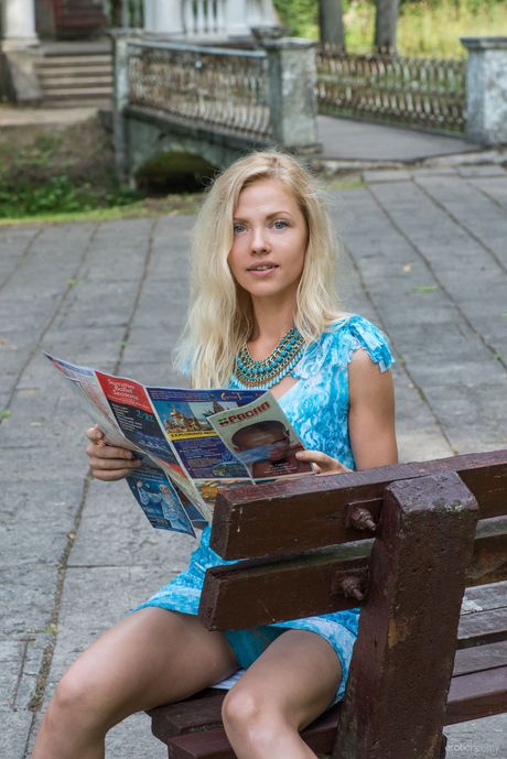 Erotic Beauty: Camelia blonde maigre se déshabille et pose dans le parc