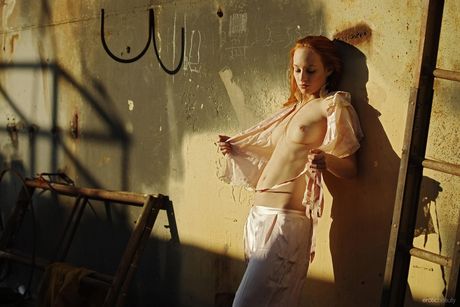 Erotic Beauty: Skinny rousse Sally A devient nue dans la nature et pose son corps sexy