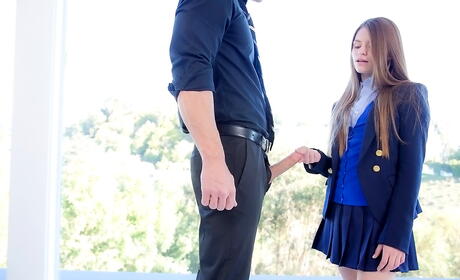 Pure 18: Superbe adolescente américaine Alice March en jupe fantaisie travail sur la bite et profite d'une explosion de sperme sur le visage