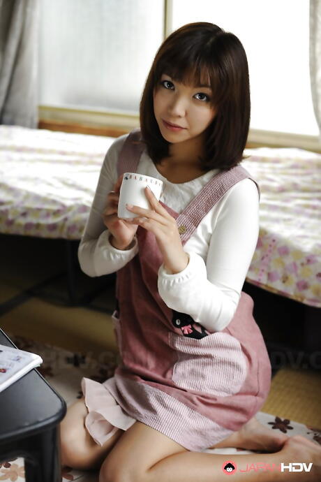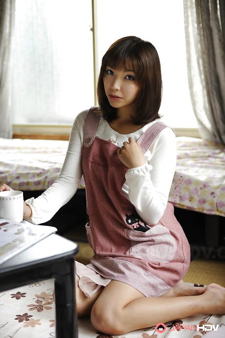 Japan HDV: Superbe cheveux noirs japonais Juri Kitahara dans une belle jupe dévoile les minuscules seins et la chatte poilue extérieure