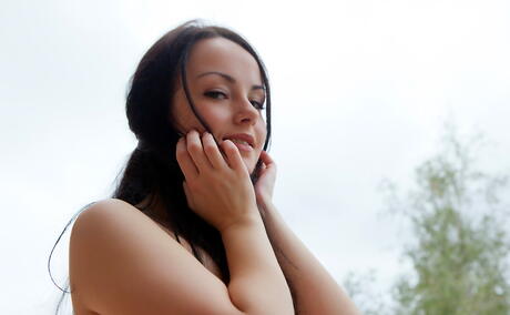 Rylsky Art: Sylphon Brunette Teen Mirelle A expose les gros seins et écarte les jambes en plein air