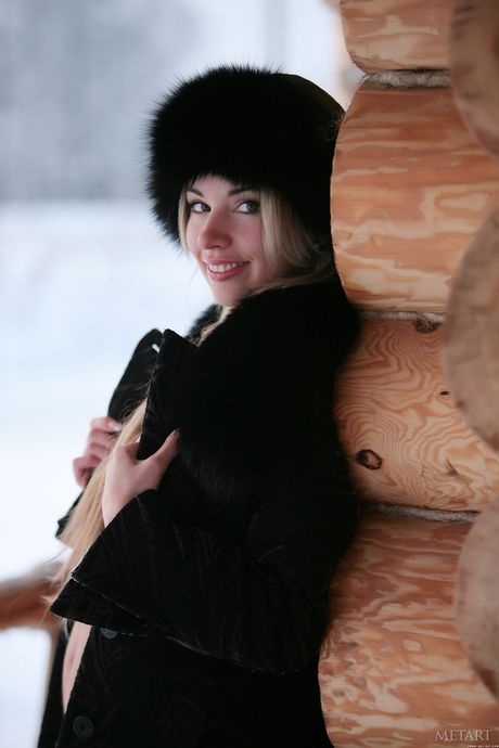 Met Art: Teen teen Natalia B dépouille son manteau de fourrure et pose nue dans la forêt enneigée