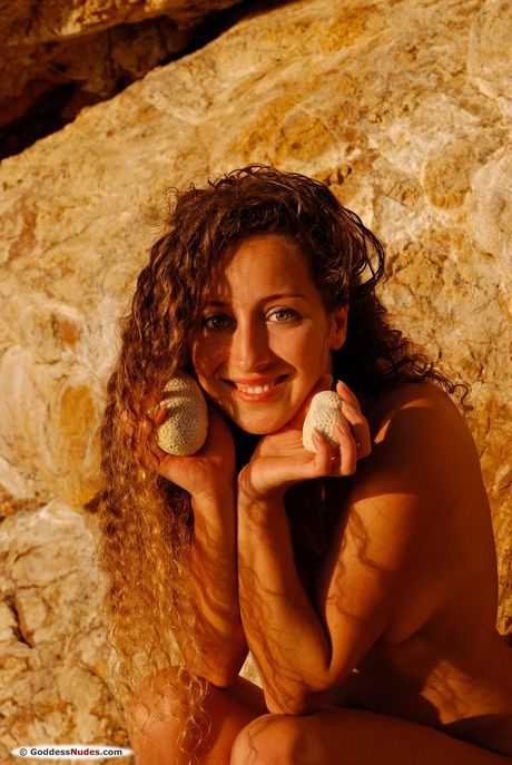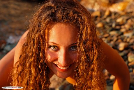Goddess Nudes: Jeune rouge rousse Sarka met en évidence sa chatte de bande d'atterrissage alors qu'elle était nue sur une plage