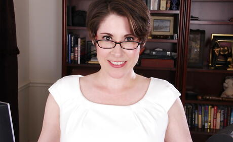 Adorable older Sadie Jones in sexy underwear exposes big knockers and spreads her legs