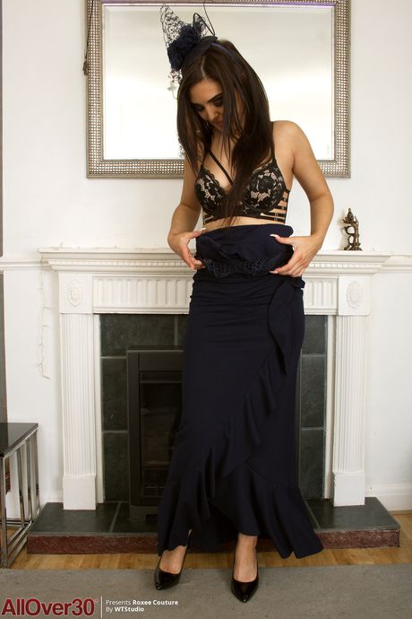 30 plus female Roxee Couture removes a black dress before toying her pussy