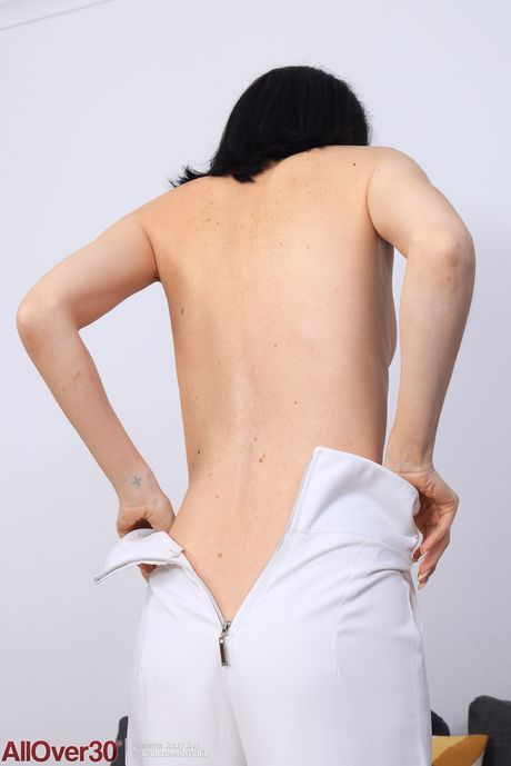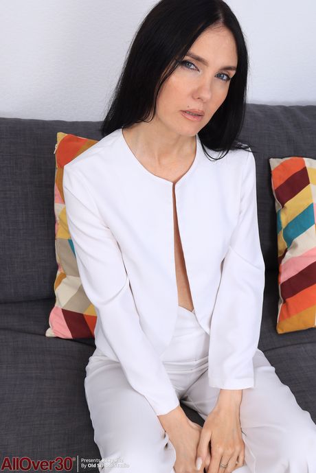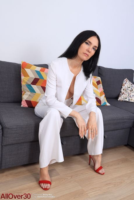 30 plus female Roxy Roz removes a dress before masturbating with a vibrator
