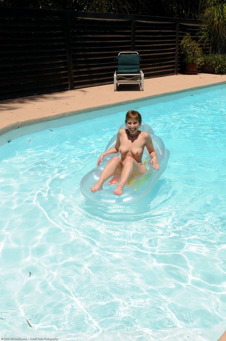 Amateur MILF Brandi Minx shows her big ass and poses poolside