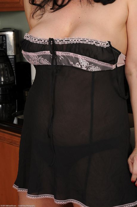 Amateur MILF Claudine shows her big tits and masturbates in the kitchen