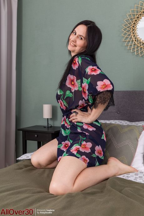 Amateur MILF Isadora shows her hairy pussy and her big saggy tits