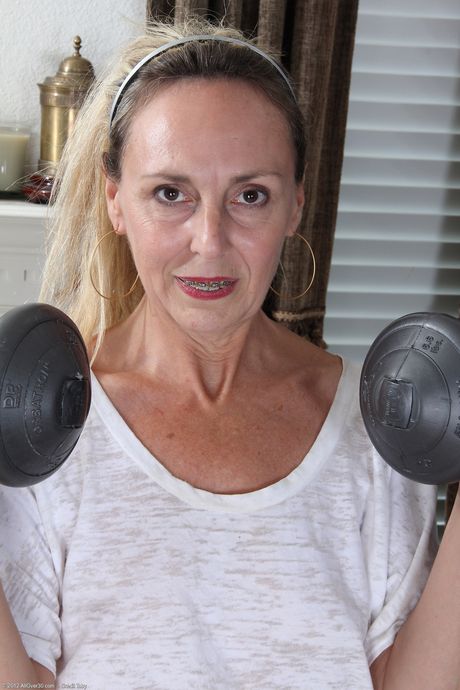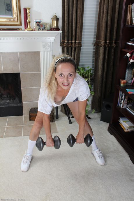 Amateur MILF Sienna shows her big ass & her hairy pussy during a workout