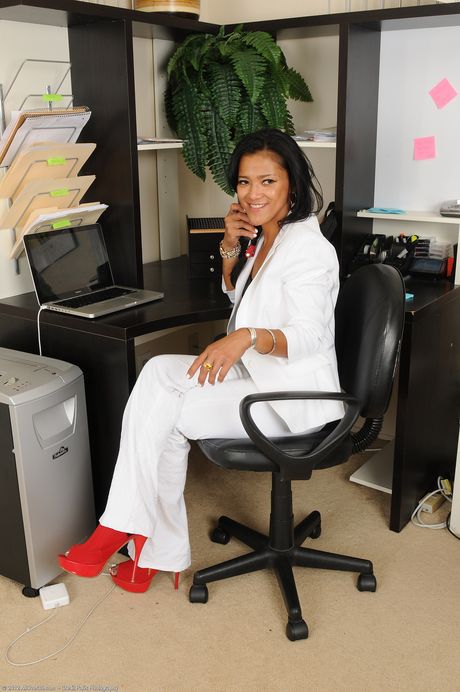 Amateur MILF Tia Shelby shows off her big ass and toys her pussy at work
