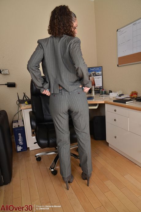 Amateur secretary Victoria Monet shows her big ass and pussy at work