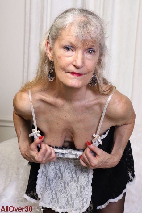 BBW granny Linda Jones strips and masturbates in her maid outfit