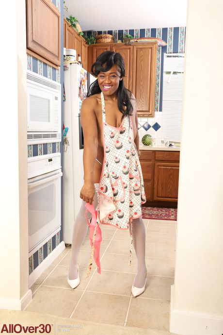 Black MILF Sunny shows off her big ass & her big tits while doing housework