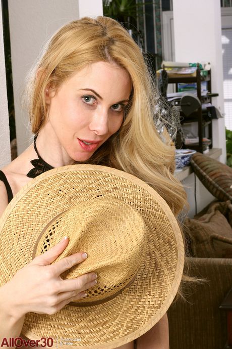 Blonde mature Ciel strips off her cowgirl hat and reveals her hot body