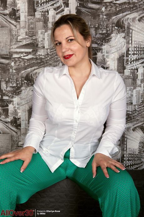 Chubby mature lady Ellariya Rose shows her big tits and spreads her pussy