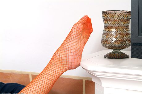 Chubby mature Tina shows off her big ass & her hot feet in stockings