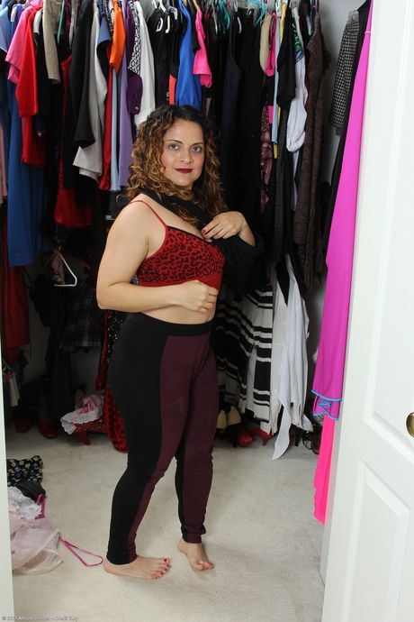 Chubby MILF Drew Jones shows off her big ass and rubs her bush