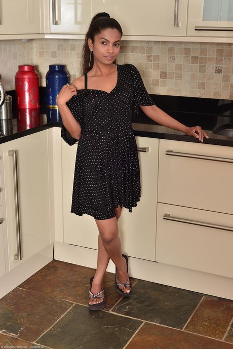 Ebony MILF Alishaaa Mae shows her big ass and hairy cunt in the kitchen