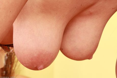 Hot MILF Enza strips and shows her saggy tits and her shaved pussy