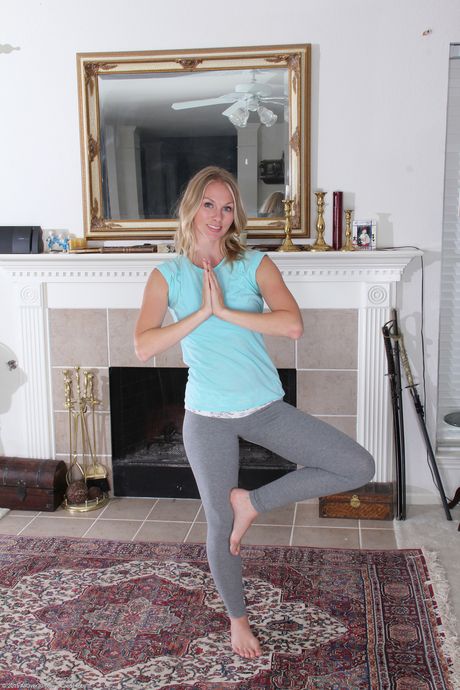 Hot MILF Lara Elaine strips her spandex & shows her shaved pussy