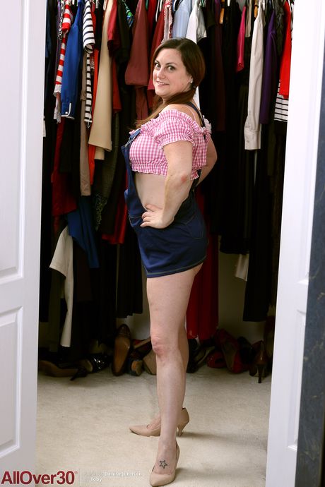 Mature amateur Denise Johnson shows her big ass and rubs her pussy
