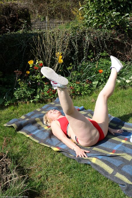 Mature amateur Michelle F shows her big booty and poses outdoors