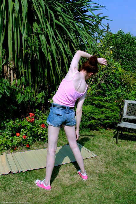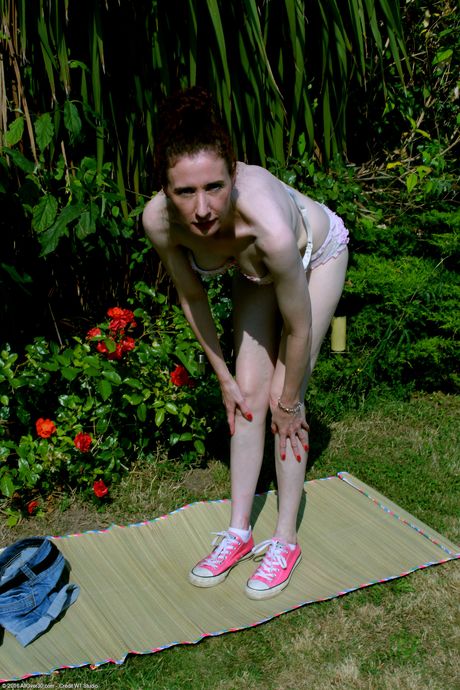 Mature amateur Scarlet Louise shows her big booty and poses outdoors