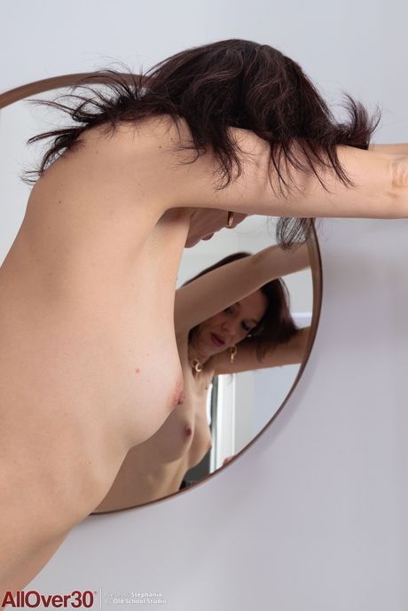 Mature amateur Stephania shows her hairy pussy and spreads it wide