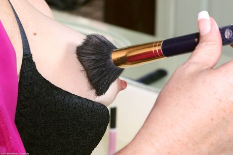 Mature blonde Victoria Powers shows her tiny tits and spreads her twat