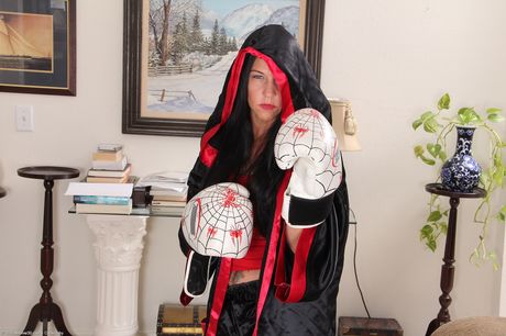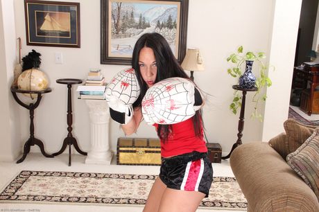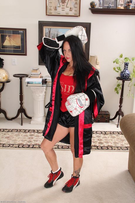 Mature boxer Kiera Blu strips and shows her big ass and tits